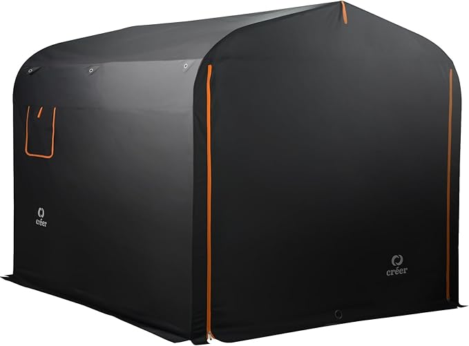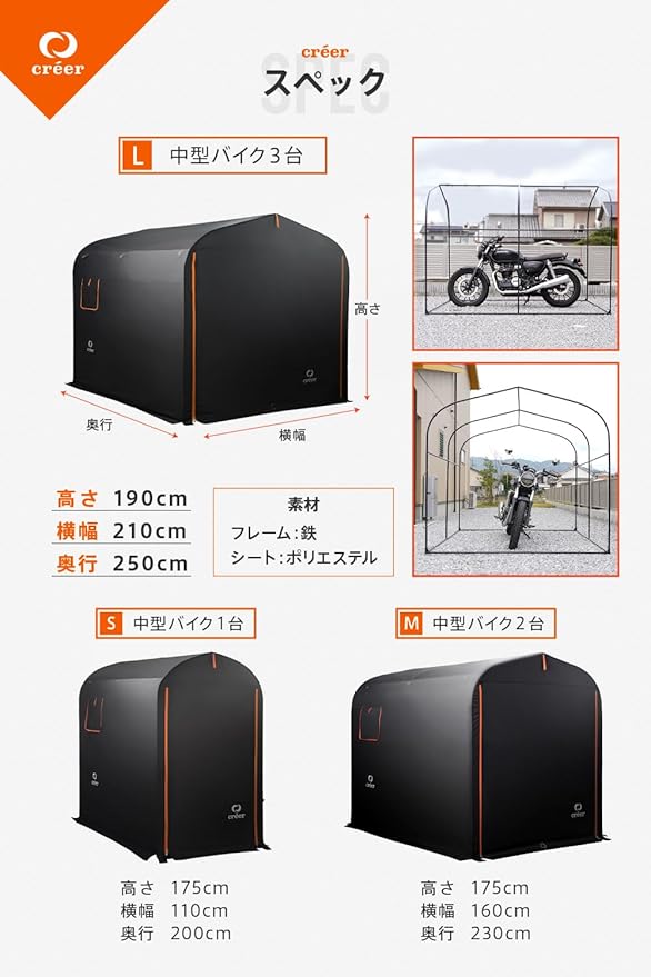 5. créer バイクガレージ 3サイズ 【ロープ固定用ホール搭載】 【組立簡単設計】 ペグ・重石カバー付 耐水圧3500mm・難燃加工・両面開き 大型バイク対応 バイクシェルター サイクルハウス (ブラック)