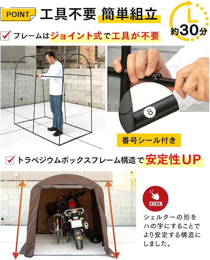 - テント型バイクガレージの耐久性や設置方法について